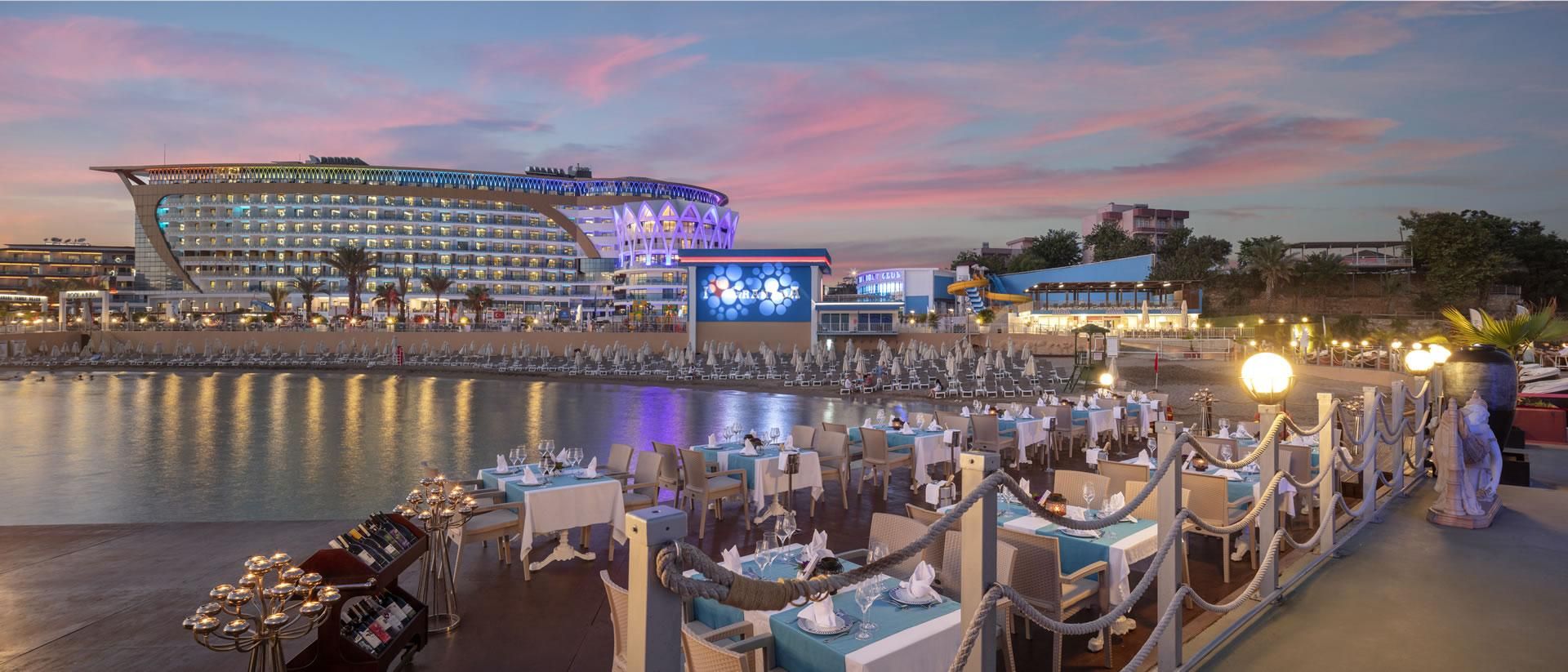 Sabah, öğle ve akşam açık büfe yemekler ücretsiz. Tesisin belirlemiş olduğu markalar dahilinde yerli ve yabancı alkollü ve alkolsüz içecekler 24 saat belirli barlarda ücretsiz.