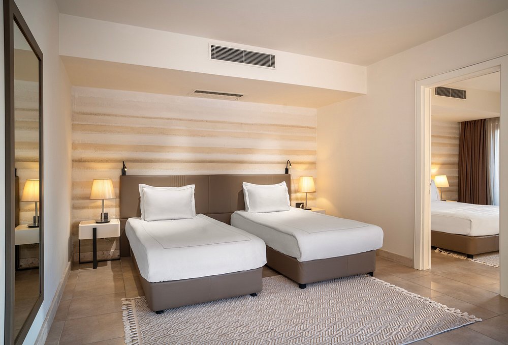 Deniz ve kara manzaralı konaklama seçenekleri sunan tesisin standart odalarında; minibar, çay-kahve seti, merkezi klima, kasa, LCD TV ve Wi-Fi gibi olanaklar mevcut.