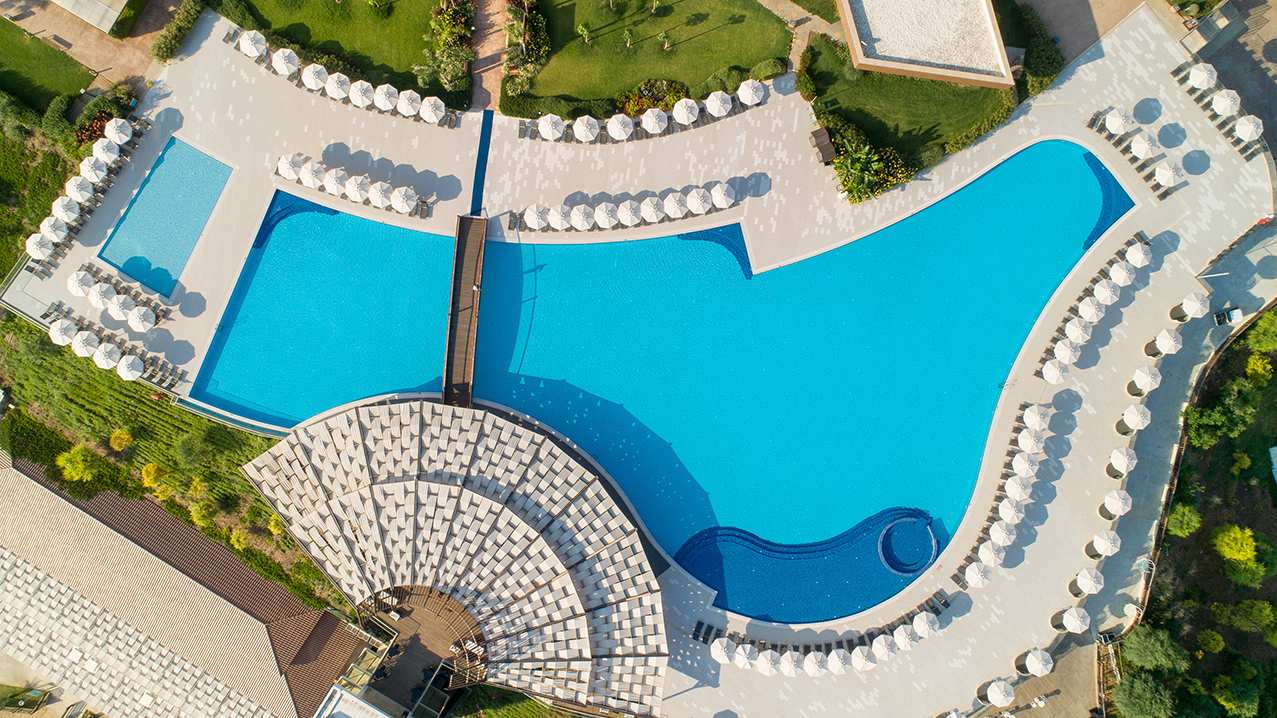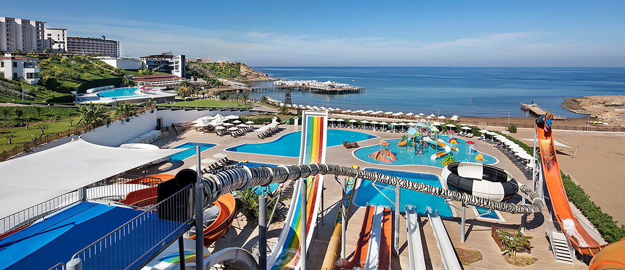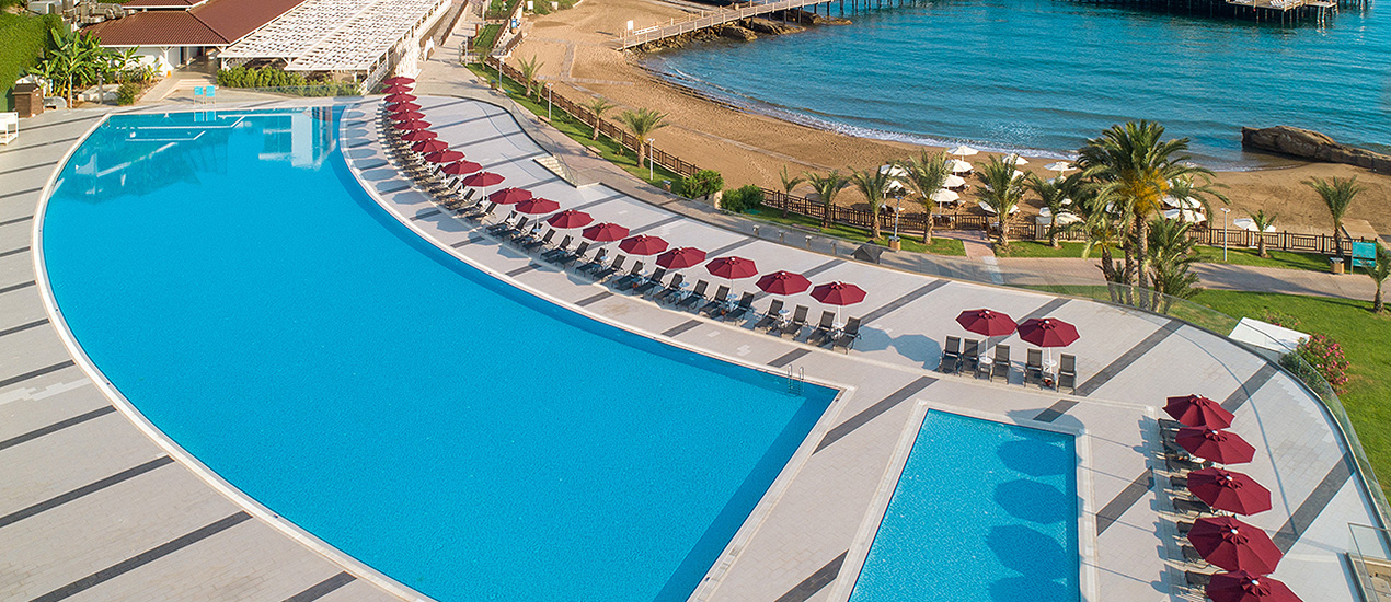 277.000 m² alan üzerine kurulu tesis, 16 farklı tipte tasarlanmış, büyük bir kısmı deniz manzaralı 822 odası ile misafirlerini ağırlıyor. Adaya Tam Pansiyon Plus konseptini getiren tesis; misafirlerine ana restoranda; sabah, öğle ve akşam, zengin çeşitlilikte yiyecek-içecek servisini ücretsiz olarak sunuyor. Konsept dahilinde misafirler; kahvaltı, öğle ve akşam yemeği, beş büfesi, gece yemeğinden ve ana restoranda öğle ve akşam yemeklerinde sunulan tüm yerli içecekler ile otelin belirlemiş olduğu 12 yıllık yabancı alkollü içeceklerde dahil, hiçbir ücret ödemeden yararlanabiliyorlar. Mini kulüp alanında ise çocuklar için büfe yemekleri, dondurma, pasta gibi yiyecek çeşitleri ve soft içecekler ücretsiz olarak sunuluyor. Tesiste ayrıca dünyanın dört bir yanından en özel lezzetlerin sunulduğu 4 adet a la carte restoran ve Snack Restoran da ücretli olarak hizmet sunuyor.