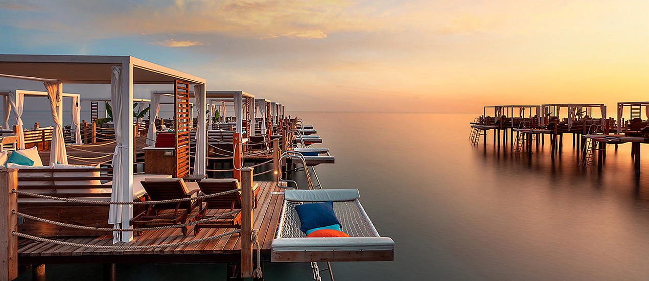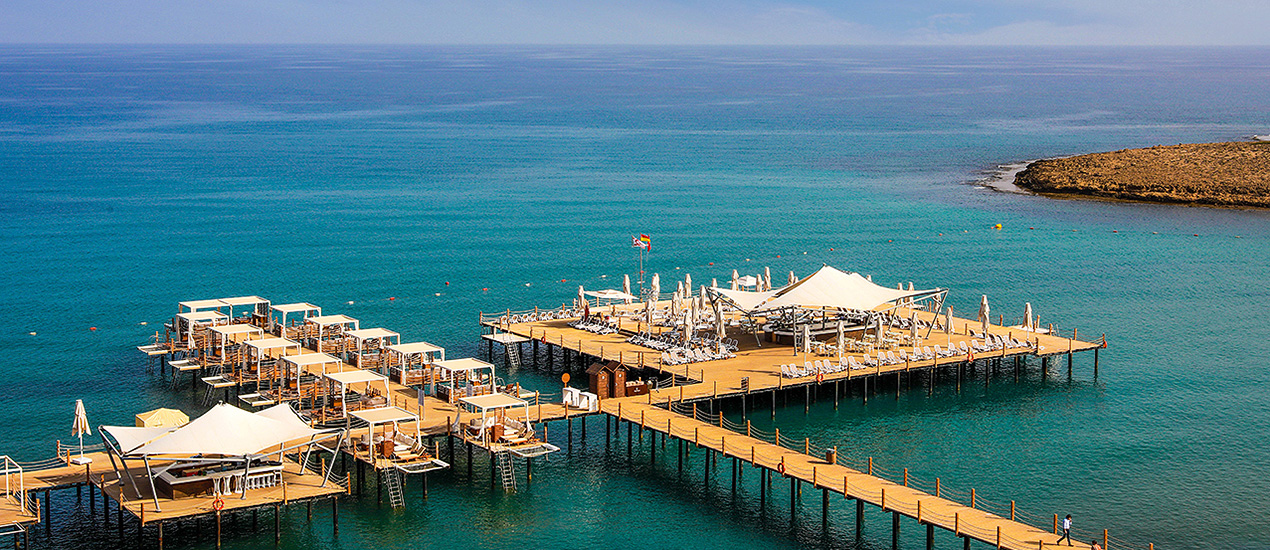 İskelede 6 ve 8 kişilik olmak üzere 2 farklı boyutta pavillion bulunuyor. Pavillion kullanımı ekstra ücretli ve rezervasyonlu.