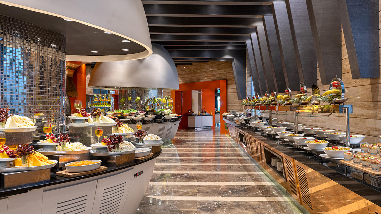 Tesiste günde 5 öğün (Sabah, öğle, beş büfesi, akşam ve gece büfesi) ücretsiz yeme-içme hizmeti sunuluyor. Ana restoranda öğle ve akşam yemeklerinde sunulan tüm yerli içecekler ve tesisin belirlemiş olduğu bazı yabancı alkollü içecekler ücretsiz.