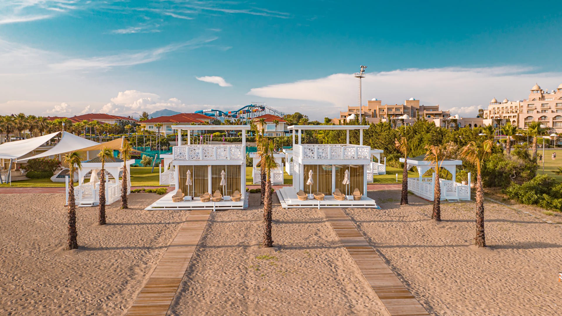 Tesis içerisinde kurulu büyük bir alana (20.000 m²) ve çok sayıda kaydırak çeşidine sahip (19 adet) aquaparkında; 4 adet büyük aktivite havuzu, 1 adet düşme havuzu ve 8 adet büyükler için, 11 adet de küçükler için olmak üzere toplam 19 adet kaydırak bulunuyor. Aquaparktaki havuzlardan ayrı olarak 1 adet büyük ana havuz,1 adet çocuk havuzu, 1 adet lounge pool, havuzlu süit odalar ve mevsim şartlarına göre hizmet veren kapalı havuz bulunuyor.