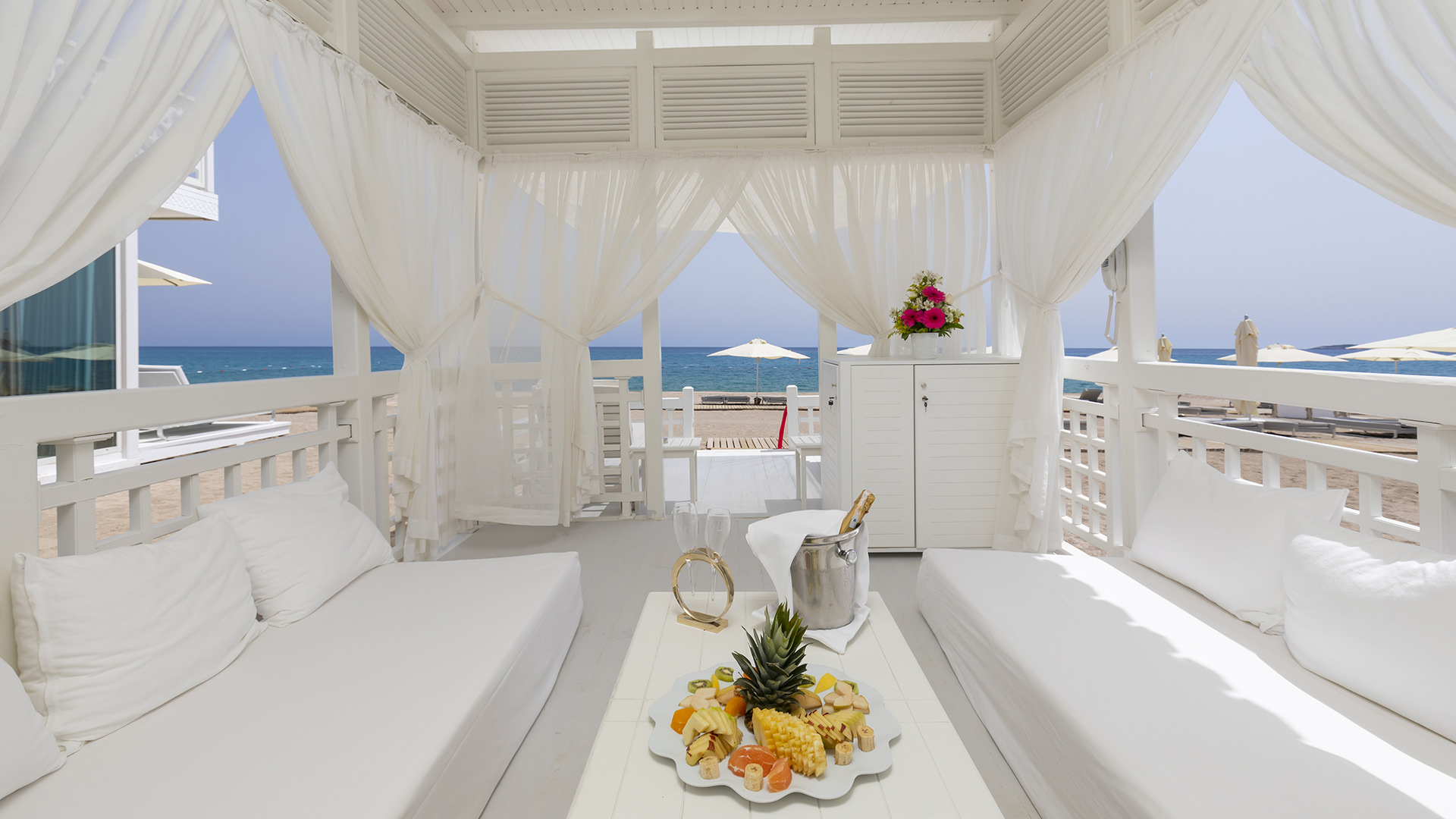 Denize sıfır konumdaki tesisin yaklaşık 300 m uzunluğunda özel kum plajı bulunuyor. Plaj ve havuzda, güneş şemsiyesi ve şezlong ücretsiz. Pavilyonlar ise ücretli.