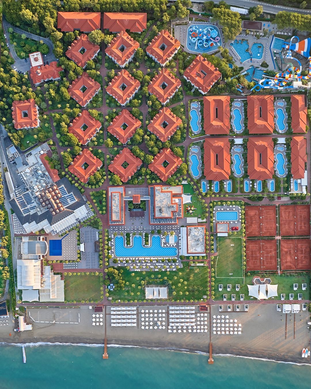 Toplam 130.000 m² genişliğinde bir alana sahip olan ve geleneksel Türk mimarisinin hakim olduğu tesisin, 20.000 m² alana kurulu aquaparkı bulunuyor.