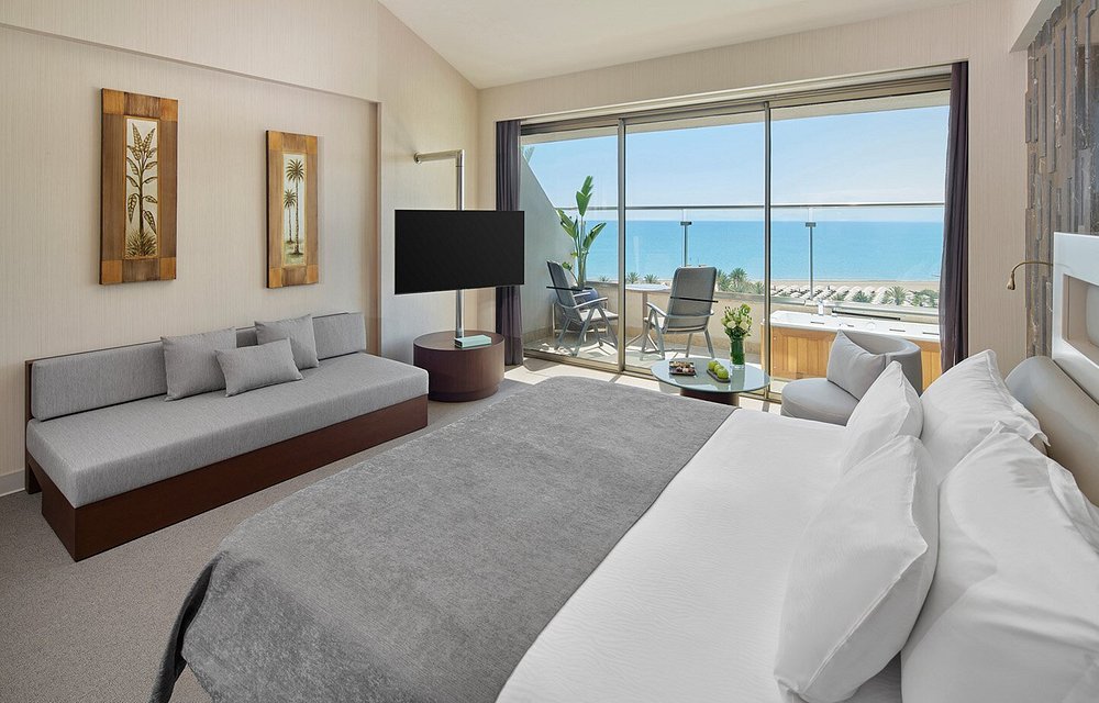 Sabah kahvaltısı, öğle ve akşam yemeklerinde food hall ve life cooking konsepti bulunmakla birlikte, kahvaltı servisi The Azure Ana Restoran ve Twenty4 A la Carte Restaurant'ta yapılıyor. Twenty4 A la Carte Restaurant, 24 saat boyunca a la carte olarak ücretsiz, rezervasyonsuz hizmet veriyor. Vitamin Juice Bar'da özel meyve ve bitkisel çaylar, özel detoks kokteyleri ve soft içecekler ücretsiz. Tesisin belirlemiş olduğu markalar dahilinde yerli içecekler ile bazı yabancı alkollü ve alkolsüz içecekler, 24 saat açık olan Jay Lounge Bar'da ücretsiz veriliyor. Minibar; soft içecekler, Efes Pilsen bira, cam şişe su, şarap (70 cl), sıcak set-up/çay kahve/Nespresso, cips, yer fıstığı, kraker, süt, şekersiz laktozsuz çikolatalı süt, fındık, soda, kakaolu bisküvi, yulaf bar, nugat bar, sağlıklı atıştırmalık bar, çikolatalı gofret ile dolduruluyor.
