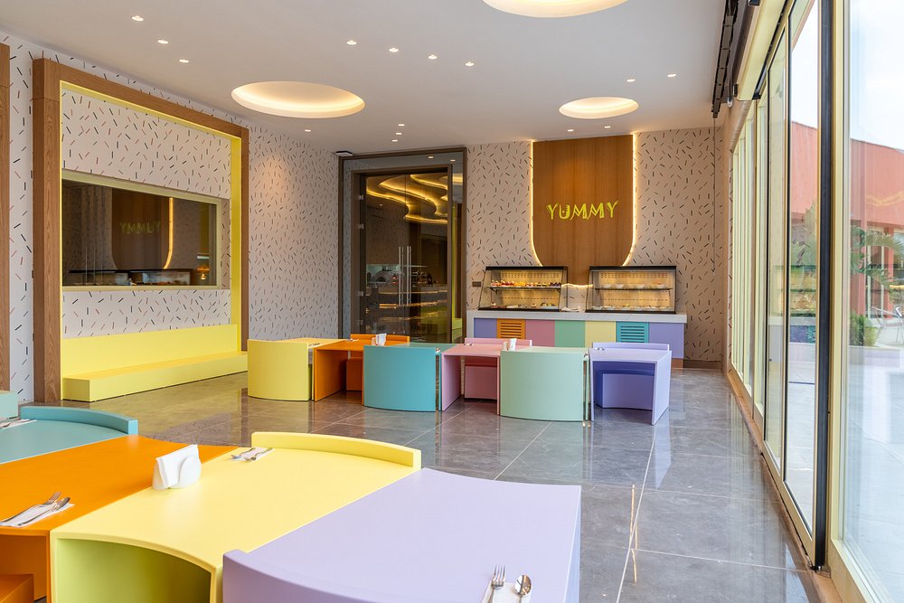 Ana restoranda çocuk büfesi, mama hazırlama köşesi, diyet köşesi bulunuyor.