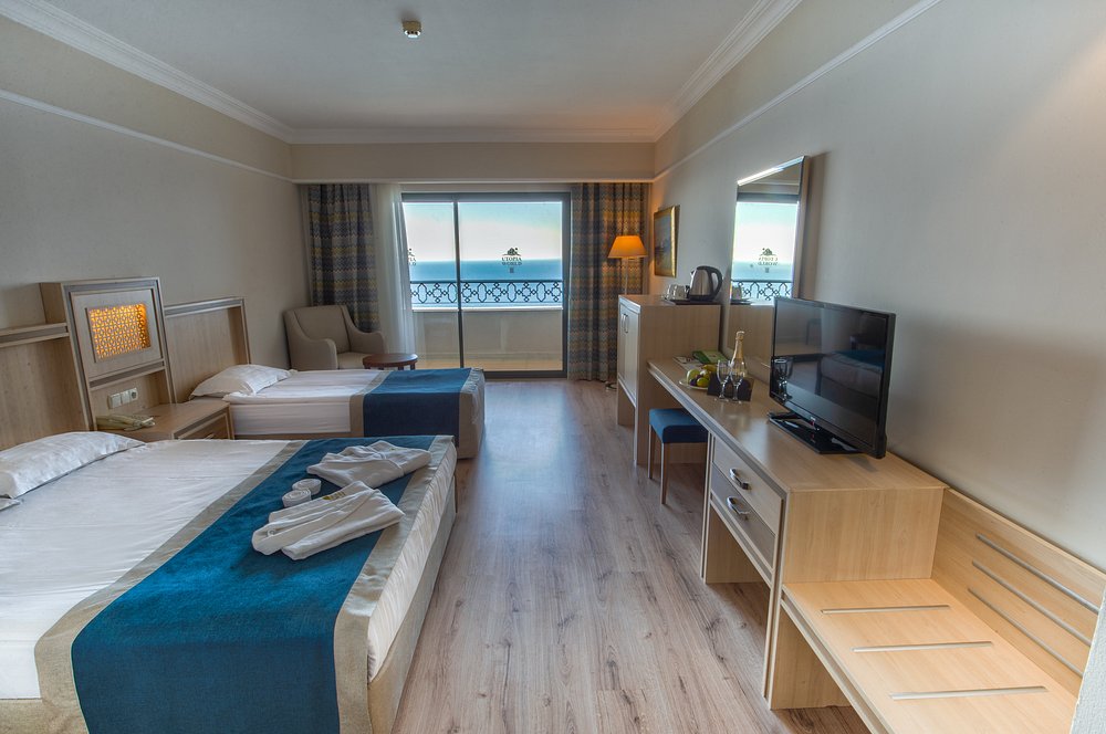 Sabah, öğle ve akşam açık büfe yemekler ücretsiz. Tesisin belirlemiş olduğu markalar dahilinde yerli alkollü, alkolsüz ve bazı yabancı içecekler Lobi Bar'da 24 saat ücretsiz. Taze sıkılmış meyve suları ve nargile ücretli. Taze sıkılmış portakal suyu kahvaltıda ücretsiz. Minibar günlük olarak su, kola, tesisin belirlediği bir meşrubat, limonata, portakal suyu (gazsız) ve bira ile dolduruluyor. Türk kahvesi, belirlenen barlarda ücretsiz olarak servis ediliyor.