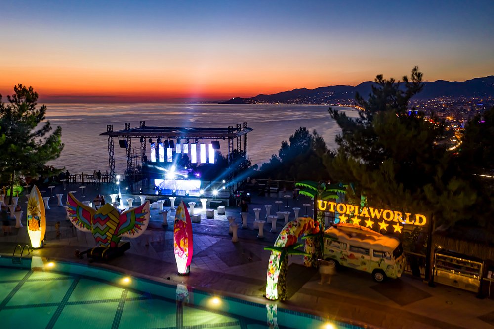 Syedra Antik Kenti'nin tarihi aydınlatan parıltısıyla süslediği Utopia World Hotel, medeniyetlerin buluştuğu surların içinde hizmet veriyor. 105 dönümlük bir arazi üzerine kurulmuş tesisin 15.000 m² aquapark alanı bulunuyor.