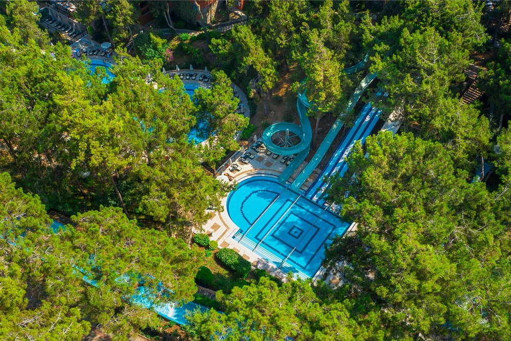 Tesisin, 15.000 m² aquapark alanı bulunuyor. Aquapark 8 yetişkin ve 4 çocuk kaydırağıyla birlikte rafting alanından oluşuyor. 01 Nisan-31 Ekim tarihleri arasında 10.00-12.00 ve 13.00-17.00 saatleri arasında hizmet veriyor.