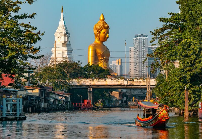 Geleneksel uzun kuyruklu tekneler, yolcu feribotları ve kargo tekneleriyle canlı olan Chao Phraya Nehri şehrin can damarıdır. Hem antik tapınakların hem de modern gökdelenlerin arasından geçerek Tayland'ın başkentine benzersiz bir bakış açısı sunan bu gezi esnasında kutsal kedi balıklarını besleyeceğiz. Eşsiz mimarisi ile ünlü tapınak Wat Arun’u panoramik olarak göreceğiz. Gezi sonrası dünyanın en heyecan verici alışveriş destinasyonlarından biri olan Bangkok’ta alışveriş için serbest zaman .